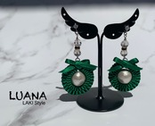 【材料】リボンレイ、スワロフスキー、黒×ゴールドロンデル、コットンパール
